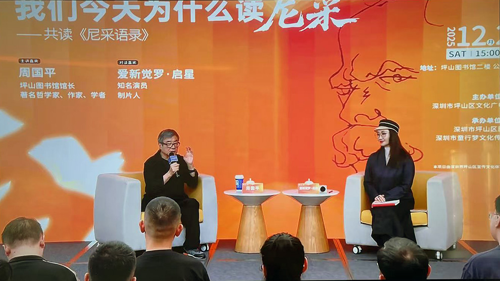 一场以“我们今天为什么要读尼采?”为主题的哲学对谈于2025年12月20日在深圳坪山图书馆举行,启星与周国平(著名哲学家、作家、学者、坪山图书馆馆长)在活动中聚焦尼采思想的当代价值,通过“理性与感性的对话”探索经典哲学滋养现代生活的多元路径,既回应了当代人对“经典为何值得读”的普遍困惑,也聚焦尼采思想中“具有当代意义的段落”,试图搭建传统哲学与现代生活的桥梁。此次活动是深圳坪山图书馆“书话坪山”系列活动的重要组成部分。